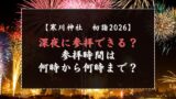 「平日でも30分待った」「1月末でも駐車場渋滞が続いていた」という声もあり、1月中は常に渋滞を覚悟する必要があります。