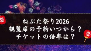 青森ねぶた祭りを現地で観覧したいと思ったとき、多くの人が最初につまずくのが「観覧席はいつから予約できるの?」「チケットってそんなに倍率が高いの?」という疑問ではないでしょうか。毎年大人気のねぶた祭りは開催日が近づくにつれて情報が錯綜し、気づ...